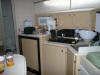 Küche mit Microwelle, E+Spiritus-Herd, Kühlschrank, Kaffeemaschine, Spüle