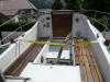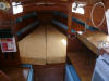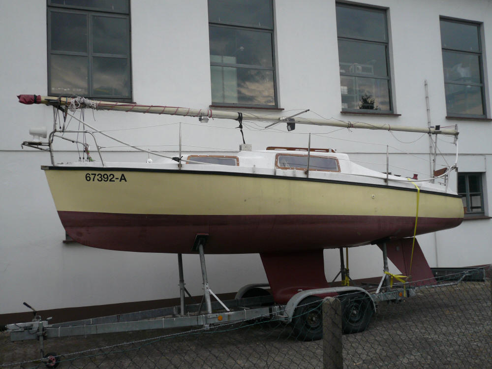 Häh, wieso jetzt ein Segelboot?: Da es ja immer noch eins der erklärten Fernziele meiner erweiterten Lebensplanung ist, irgendwann mal eine Auszeit von 2-3 Jahren zu nehmen und "zu segeln, soweit ich eben komme", beschlich mich der Gedanke, es sei vielleicht nicht die blödeste Idee, vorher wenigstens Segeln zu lernen. Zu diesem Zweck brauchte ich ein Segelboot, und deswegen habe ich im Juni 2008 die "Metis" (die damals noch "Banane" hieß) ersteigert. Unbeschwert von jedweden seglerischen Grundkenntnissen oder -Erfahrungen außer einigen Jahren Windsurfen und etwas angelesener Theorie habe ich den Kahn dann im Sommer an die Ostsee gezerrt und vor Damp meine ersten Segelerfahrungen gemacht, die sich gar nicht mal so schlecht anließen. Das Boot segelt leicht, schnell und ordentlich und macht Spaß, ich bin weder gekentert noch irgendwo aufgelaufen, und wenn ich mich nicht aufgrund einer vom Vorbesitzer "etwas" ungeschickt angebrachten Edelstahlkante am Niedergangsluk mehrfach skalpiert hätte oder wenigstens aufrecht unten drin sitzen könnte, wäre das vielleicht sogar was für mehr als eine Saison geworden. So aber habe ich mich entschlossen, die "Metis" wieder zu verkaufen und bei Gelegenheit ein etwas größeres Zweitboot mit vernünftiger Stehhöhe anzuschaffen. Hersteller: Marina-Werft Fürstenau bei Osnabrück Masse: 6,98 x 2,22 x 1,14 (23ft) Motor: Volvo Penta Einbau-Benziner MB2A50s (2 Zylinder/4-Takt) mit 7.5PS mit Saildrive Baujahr: Erstwasserung 1976 Zustand: Alt, häßlich, aber segelbereit. Angesichts der Tatsache, daß das Boot über 30 Jahre alt ist und mittlerweile durch etliche Hände ging, ist der allgemeine Zustand gar nicht mal so schlecht. Der Vorbesitzer hat sich hinreißen lassen, Rumpf und Deck mit neuer Farbe zu versehen, das ging leicht in die Hose, und auch der Innenausbau ist nicht unbedingt Kandidat für den "deutschen Handwerkspreis", aber segeln läßt sich die Metis (auch von mir als Anfänger) ausserordentlich gut und sicher. Rechtliches: Nix besonderes. Ganz normale Registrierung beim WSA Hameln. Ausstattung/Zubehör: Abgesehen davon, daß keine Toilette an Bord ist, hat der Vorbesitzer bei der Ausstattung in die Vollen gegriffen. Von neuer Genua mit Plastimo Rollreffanlage, neuem 56l-Kühlschrank, neuer Gel-Batterie mit Ladegerät und Landanschluß, neuem Solarpanel mit Lader, diversen neuen Lampen und LEDs im Innenraum bis hin zum fast runderneuerten Trailer ist das Boot eigentlich top ausgestattet.
