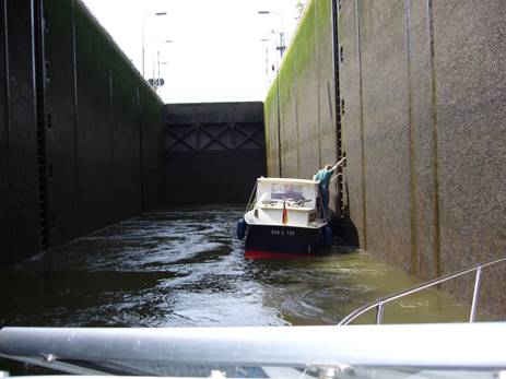 durften dann etwas später mit nur einem anderen Sportboot hochschleusen. Wider