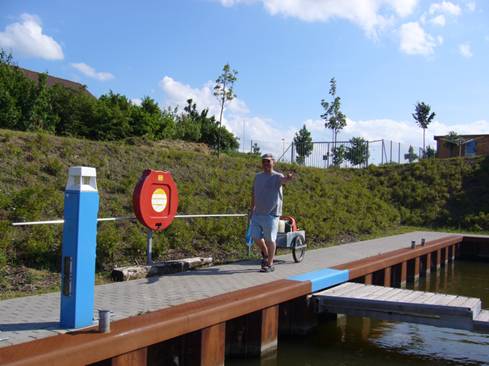 lediglich aus einer Ausbuchtung im Kanal besteht, in der zwei Schwimmstege und