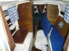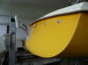 Und wieso jetzt wieder das gleiche in Gelb, wo doch die andere auch schon zu klein war? Tja. Sagen wir einfach, sie war billig genug, um mich spontan zu locken. Wie schon in der "Metis"-Beschreibung erwähnt, ist die Marina 23 ein schnelles und easy zu segelndes Boot. Diese hier lag zeitlebens am Starnberger See, hat also nie Salzwasser gesehen, kommt aus erster Hand (!) und ist im Original-Zustand, also völlig unverbastelt, was mich am meisten an Ihr gereizt hat, da die "Metis" für eine Überarbeitung hätte völlig abgeschliffen werden müssen. (... gemußt worden zu hätte? ... hätte gemußt werden? Wie auch immer...). Letzteres bringt immerhin 3-5cm mehr Kopffreiheit, da man zwar auf die, in der "Metis" nachgerüsteten, Mahagonie-Panele verzichten muß und auf nacktes GFK blickt, dafür aber der Innenraum nicht noch zusätzlich künstlich verkleinert wird. Hat halt alles seine zwei Seiten...